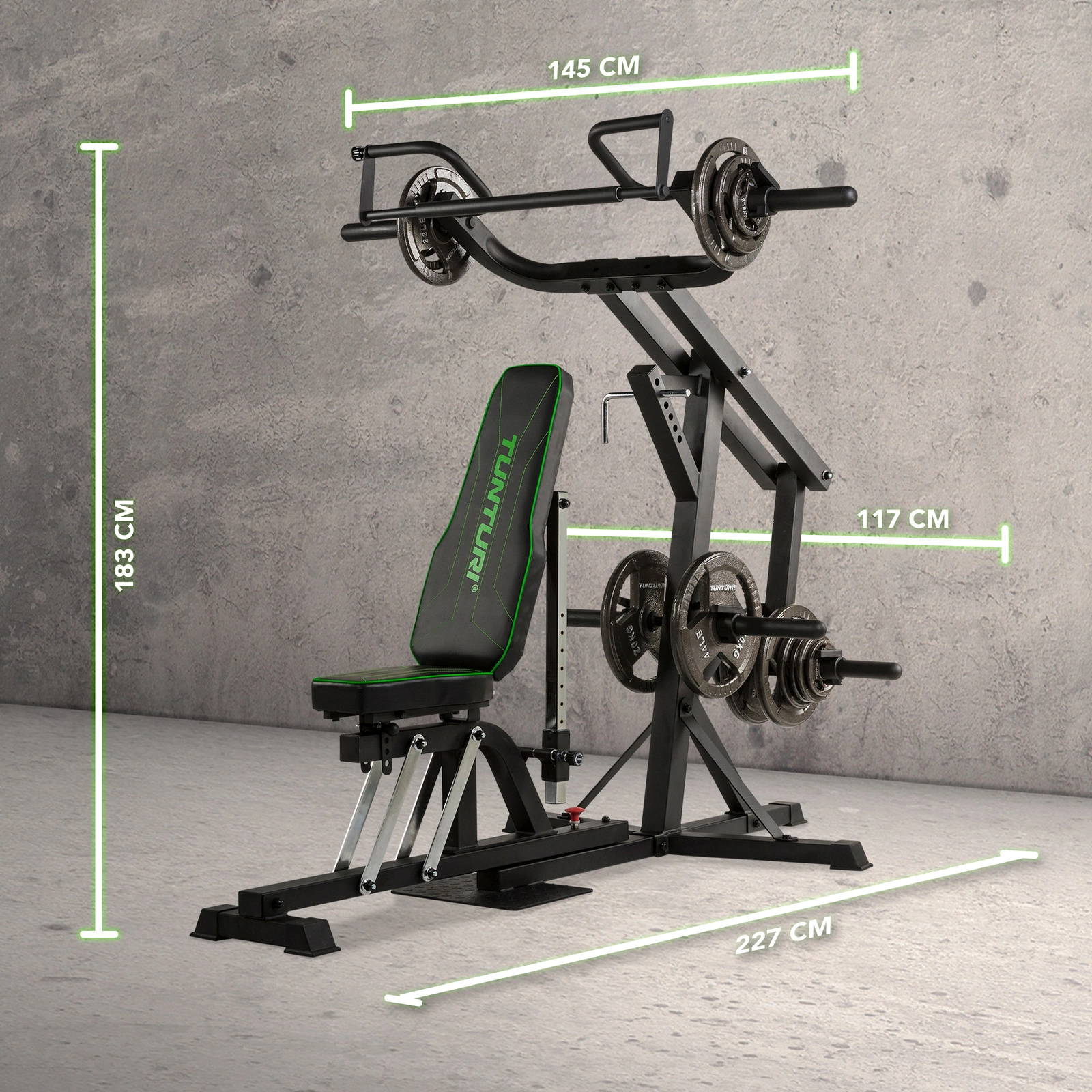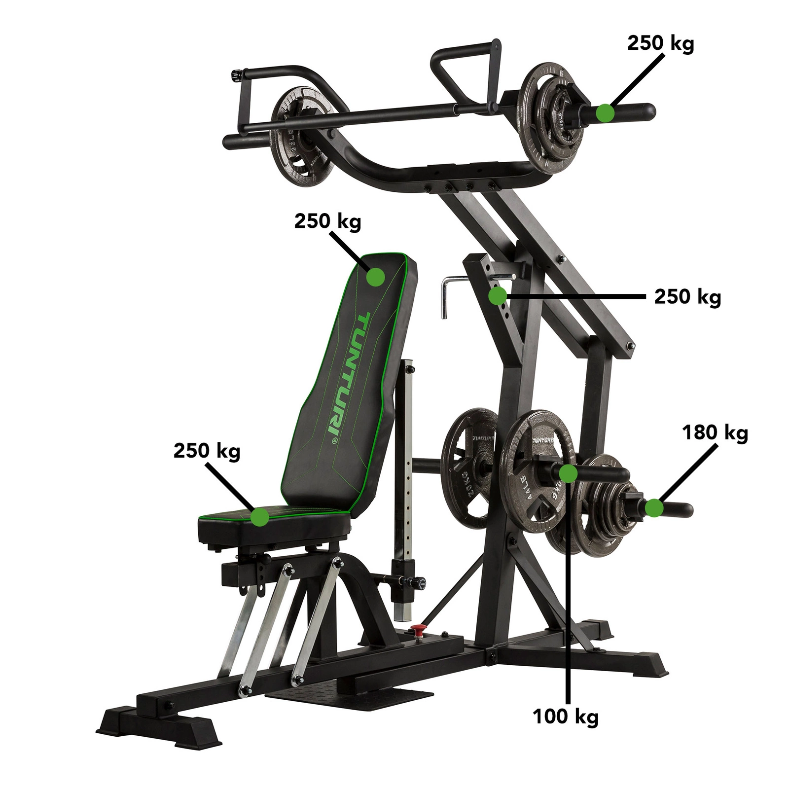 - Bezpieczna dźwignia z możliwością regulacji obciążenia - bez ryzyka, jak przy wolnych ciężarach