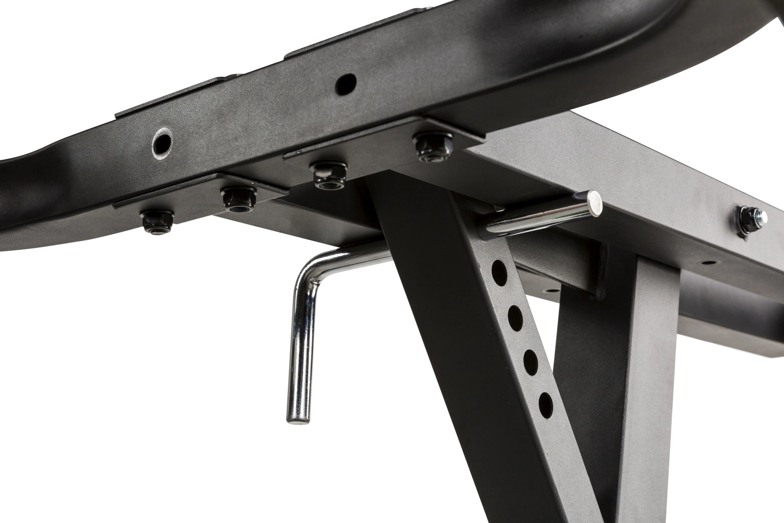 Dzięki dźwigni z blokadą, regulujesz obciążenie samodzielnie - wystarczy założyć odpowiednie talerze. System blokad zapewnia stabilność i bezpieczeństwo podczas każdego powtórzenia. Talerze nie są częścią zestawu - można je dokupić osobno.Konstrukcja ze stali malowanej proszkowo w kolorze matowej czerni sprawia, że WT80 jest nie tylko solidny, ale też świetnie się prezentuje. Idealny zarówno dla początkujących, jak i zaawansowanych.