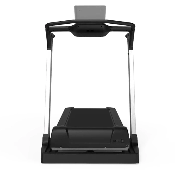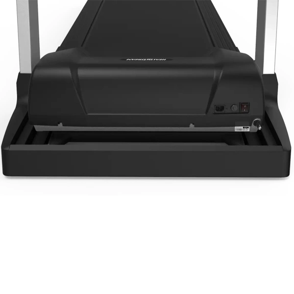 Bieżnia składa się do pozycji pionowej poprzez uniesienie pasa biegowego do góry.