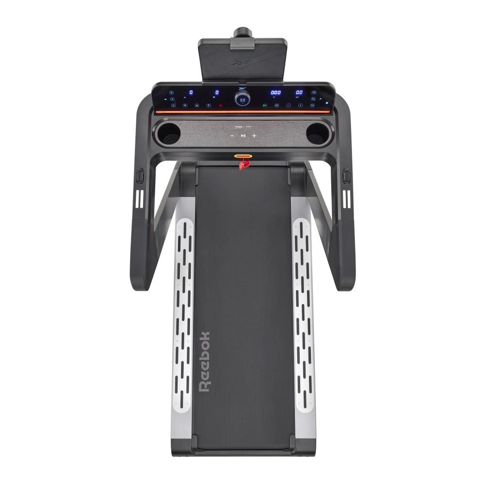 Bieżnia Reebok Z-TECH (SILNIK AC) wyposażona jest w ekran LED prezentujący kluczowe dane (prędkość, czas, dystans, kalorie, puls, nachylenie, tętno, waty, tłuszcz w organizmie), czujniki tętna na uchwytach, uchwyt na tablet do 15,6'' miejsce na butelkę oraz głośnik Bluetooth.Wygoda podczas treningu