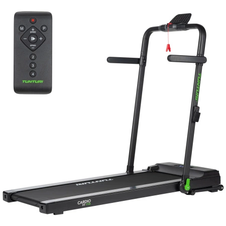 Tunturi Cardio Fit T10 to nowoczesna bieżnia domowa z silnikiem o mocy 2,25 KM, zaprojektowana z myślą o oszczędności miejsca i wygodzie użytkowania. Jej kompaktowa, składana konstrukcja pozwala na przechowywanie w pionie lub pod łóżkiem.W najnowszej wersji modelu dodano moduł Bluetooth, który umożliwia połączenie z aplikacjami treningowymi i zdalne sterowanie ustawieniami bieżni, co znacząco ułatwia personalizację treningu.