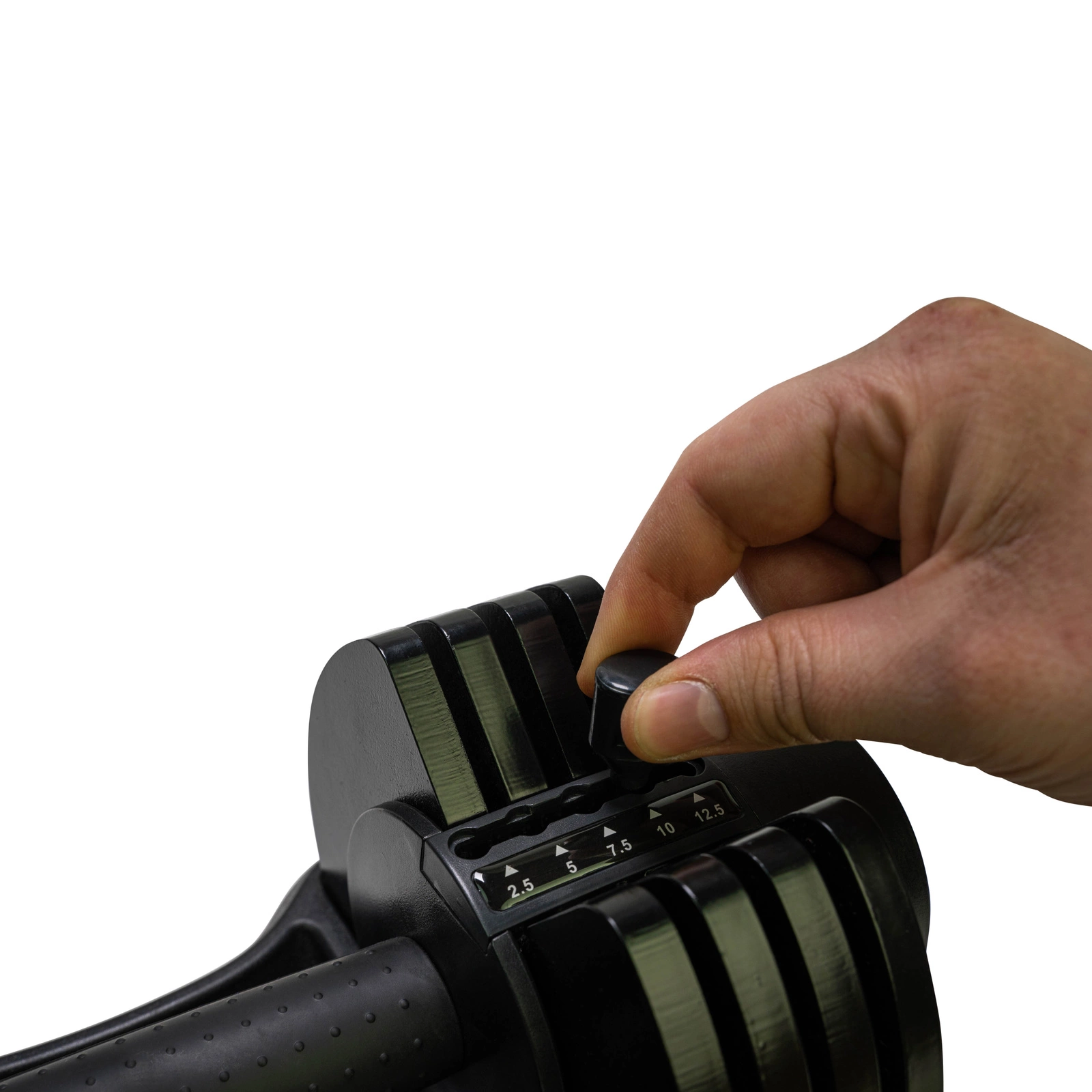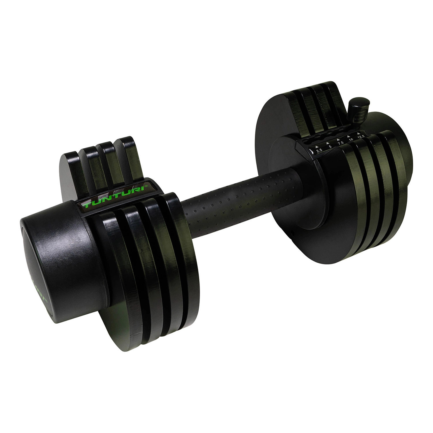 Hantla Tunturi 12,5 kg to nowoczesna i regulowana hantla, która zastępuje cały zestaw tradycyjnych obciążeń. Dzięki 5-stopniowej regulacji wagi (2,5 - 5 – 7,5 – 10 – 12,5 kg), możesz dostosować intensywność ćwiczeń do swojego poziomu zaawansowania – wszystko w jednej, kompaktowej hantli!