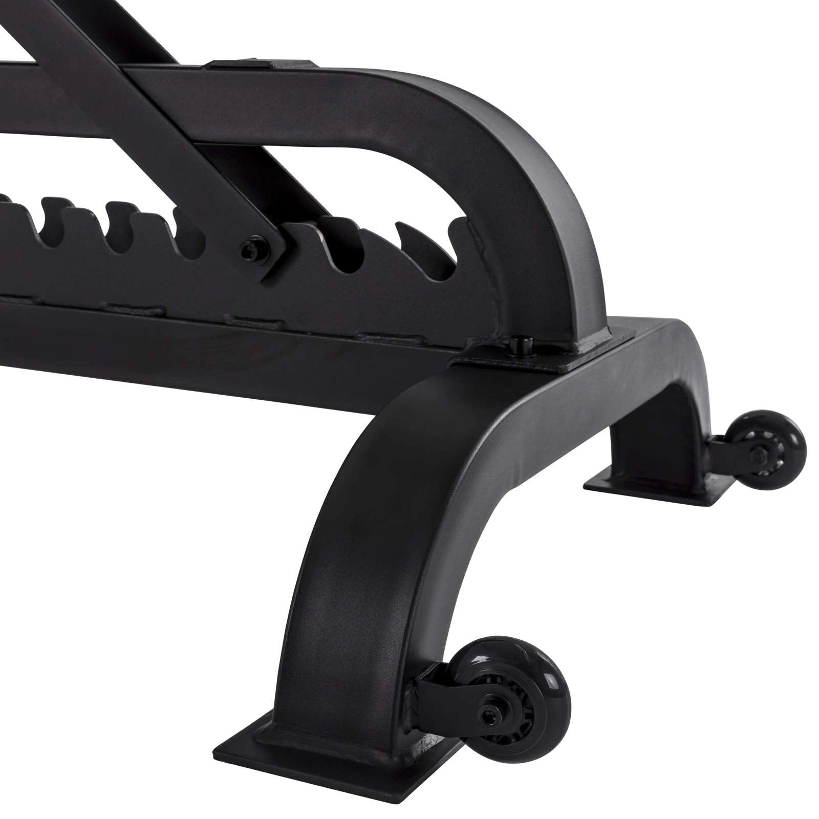 Ławka Tunturi UB90 Pro łączy wszechstronność z wygodą użytkowania dzięki swojej składanej konstrukcji. Po złożeniu ławka zajmuje znacznie mniej miejsca, co czyni ją idealnym rozwiązaniem do domowej siłowni, gdzie przestrzeń jest ograniczona. Dodatkowo, kółka transportowe oraz ergonomiczny uchwyt TPR umożliwiają łatwe i wygodne przemieszczanie sprzętu.