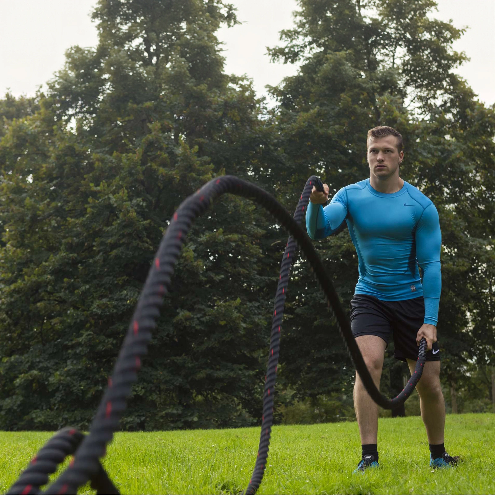 Chcesz zwiększyć swoją wytrzymałość? Ta lina treningowa Tunturi może Ci w tym pomóc! Połóż przed sobą dwie liny, przymocuj je do ciężarków lub specjalnej kotwy ściennej lub podłogowej, chwyć za drugie końce lin i następnie huśtaj je jeden po drugim. Idealne ćwiczenie na zwiększenie wytrzymałości! Liny treningowe są regularnie używane podczas obozów treningowych lub treningów obwodowych. Lina fitness jest bardzo wytrzymała, a materiał wytrzyma każdą pogodę. Idealny zarówno do użytku wewnątrz, jak i na zewnątrz!