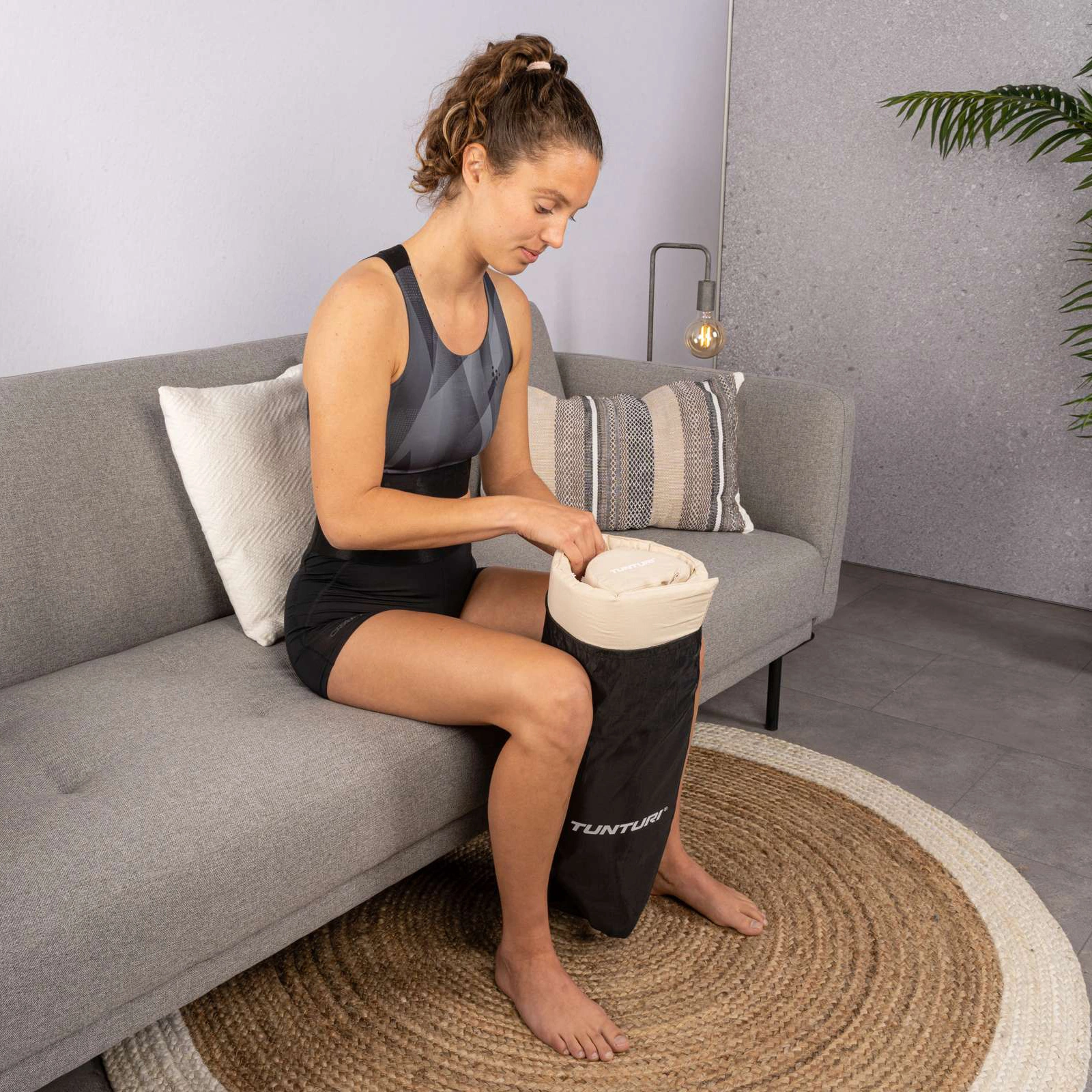 Mata do akupresury Tunturi z poduszką to praktyczny zestaw 2w1, który sprawdzi się zarówno w domu, jak i w podróży. Dzięki dołączonemu pokrowcowi z uchwytami, możesz zabrać matę ze sobą, gdziekolwiek jej potrzebujesz.