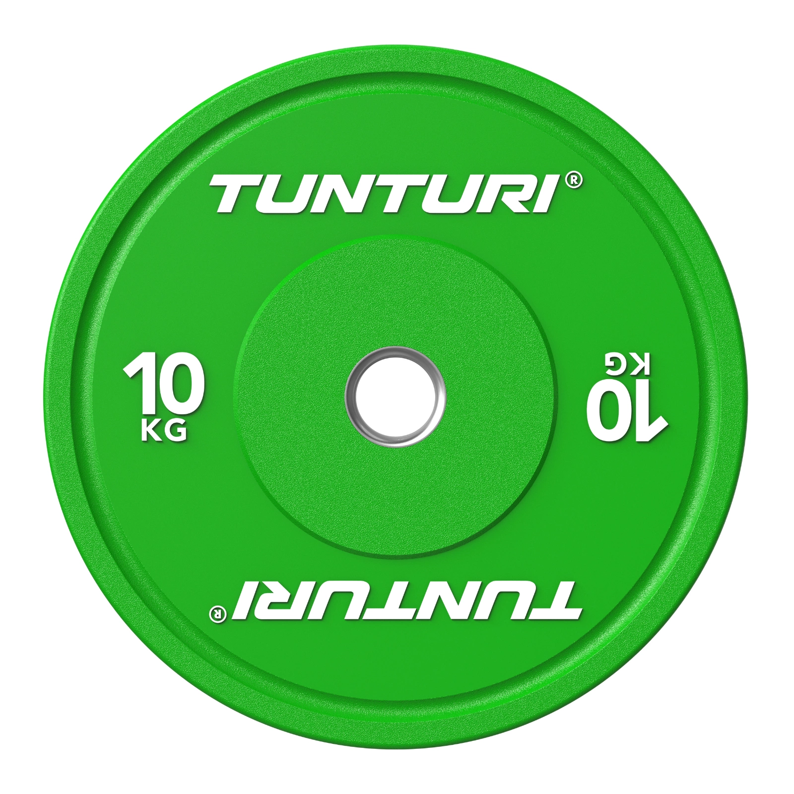 OBCIĄŻENIE TALERZ TUNTURI PLATINUM BUMPER PLATE ZIELONY, 10 KG - Profesjonalne obciążenie do sztangi