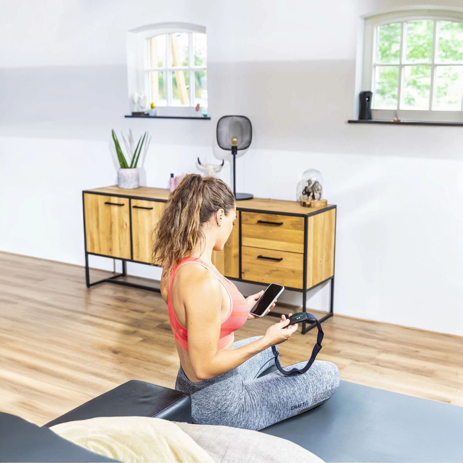 Ten czujnik tętna śledzi tętno, spalone kalorie i strefę treningową w czasie rzeczywistym. Ty wyznaczasz swoje cele, a monitor śledzi Twoje postępy i to, czy osiągasz swoje cele. W ten sposób w kontrolowany sposób zwiększasz intensywność treningu. Jest to również przydatne narzędzie do śledzenia postępów, jeśli uczestniczysz w treningu rehabilitacyjnym.