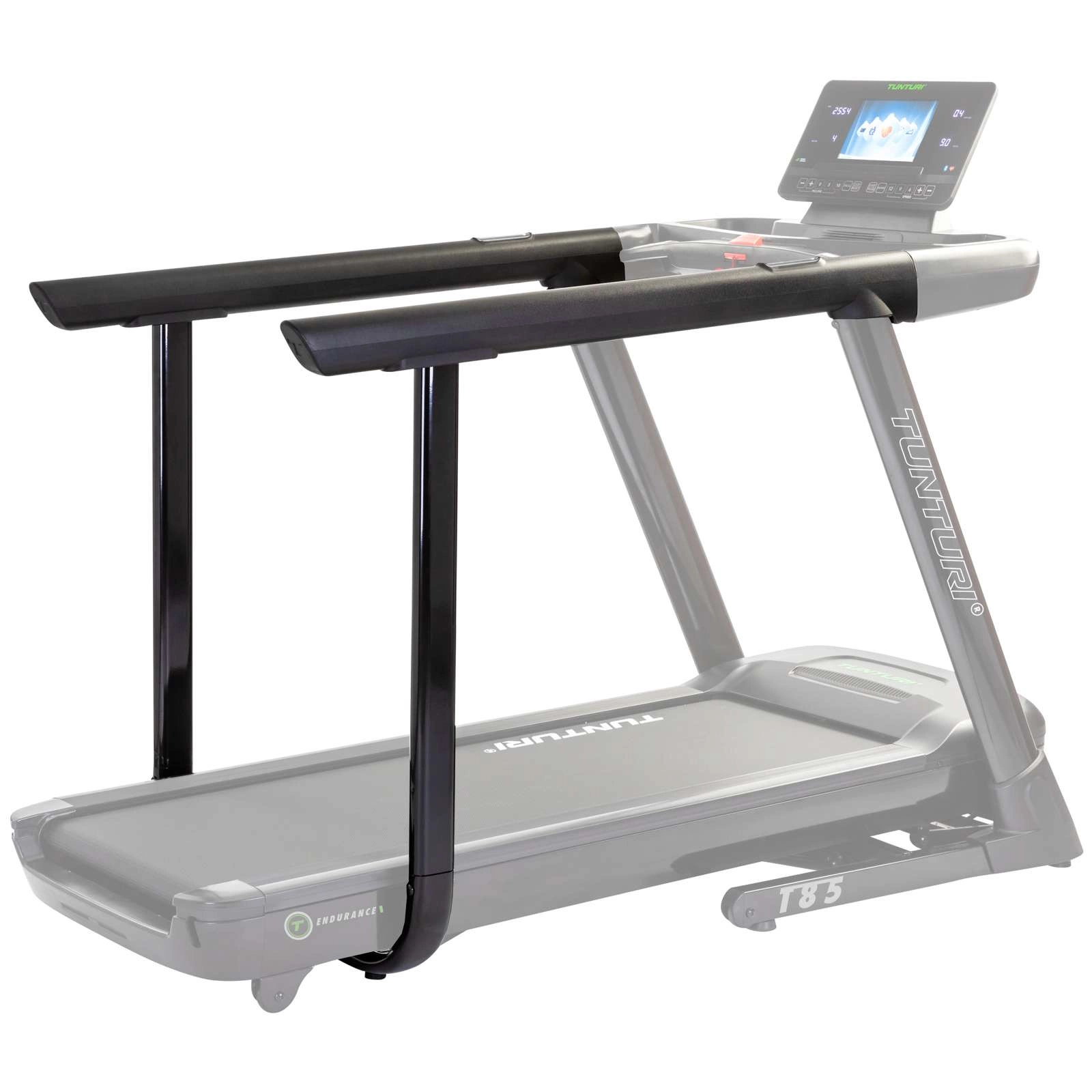 Osoby, które mogą potrzebować dodatkowego wsparcia podczas chodzenia lub biegania, mogą po prostu zamontować poręcz rehabilitacyjną (szynę REHA) na bieżni Tunturi Endurance T80, T85 i T90.