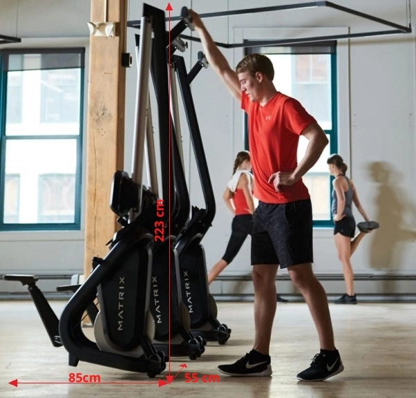 Mimo profesjonalnych możliwości, Matrix MX16 został zaprojektowany z myślą o użytku domowym. Kompaktowe wymiary (223 x 55 x 85 cm) pozwalają na efektywne wykorzystanie przestrzeni, a możliwość przechowywania w pozycji pionowej dodatkowo oszczędza miejsce po zakończeniu treningu.Blokada siedziska zwiększa stabilność przy wsiadaniu i wysiadaniu, co jest szczególnie istotne dla bezpieczeństwa użytkownika. Aluminiowa szyna ze stalowymi prowadnicami zapewnia stabilność i płynność ruchu, a cichy napęd paskiem Poly-V minimalizuje hałas podczas treningu.