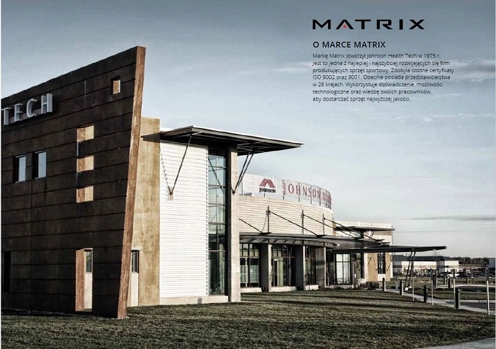 Matrix to marka należąca do koncernu Johnson Health Tech. Ltd., który od 1975 r. produkuje najwyższej klasy profesjonalne urządzenia fitness. Firma jest jednym z czołowych producentów sprzętu fitness na globalnym rynku komercyjnym oraz najszybciej rozwijającą się marką fitness na świecie, spełniając surowe wymagania europejskich norm ISO 9002 i ISO 9001. Sprzęt Matrix wyróżniają innowacyjność, niepowtarzalny design i najwyższa jakość.Johnson Health Tech. jest jednym z czołowych producentów sprzętu fitness oraz najszybciej rozwijającą się marką fitness na świecie. Sprzęt Matrix wyróżnia innowacyjność, niepowtarzalny design oraz najwyższa jakość.