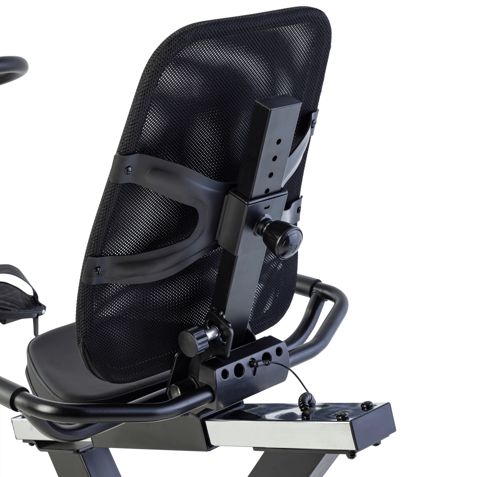 Szerokie możliwości regulacji oparcia i siedziska pozwalają dopasować pozycję do każdego użytkownika. Oparcie wykonane z miękkiej siatki zapewnia wentylację pleców nawet podczas intensywnych treningów. Siedzisko wyposażone jest w dwa stabilne uchwyty z wbudowanymi sensorami tętna.