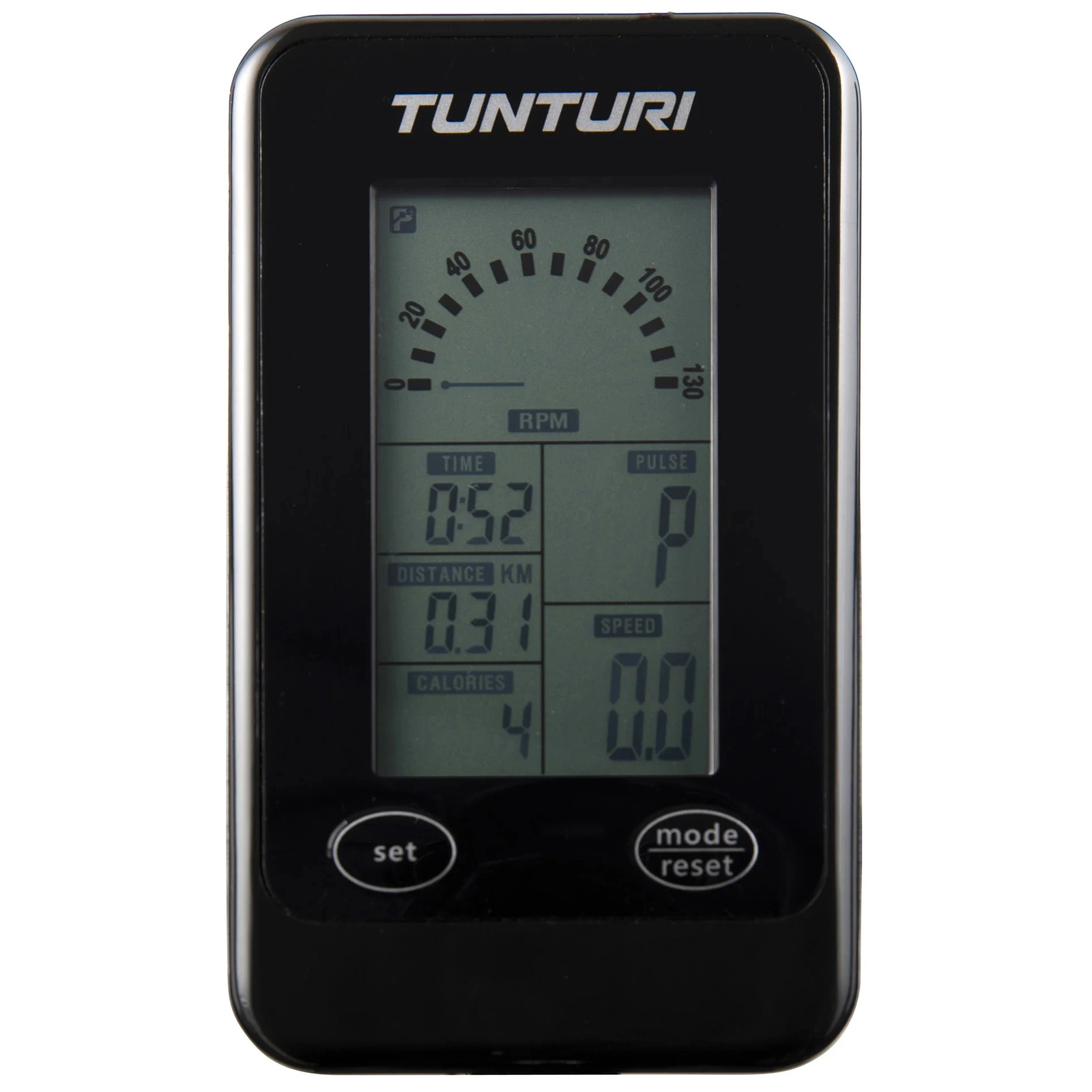 Rower Tunturi FitRace 40 HR wyposażono w przejrzysty, monochromatyczny wyświetlacz LCD o przekątnej 3,15 cala, który prezentuje wszystkie kluczowe parametry treningowe w czytelny i intuicyjny sposób. Podczas jazdy możesz na bieżąco monitorować: