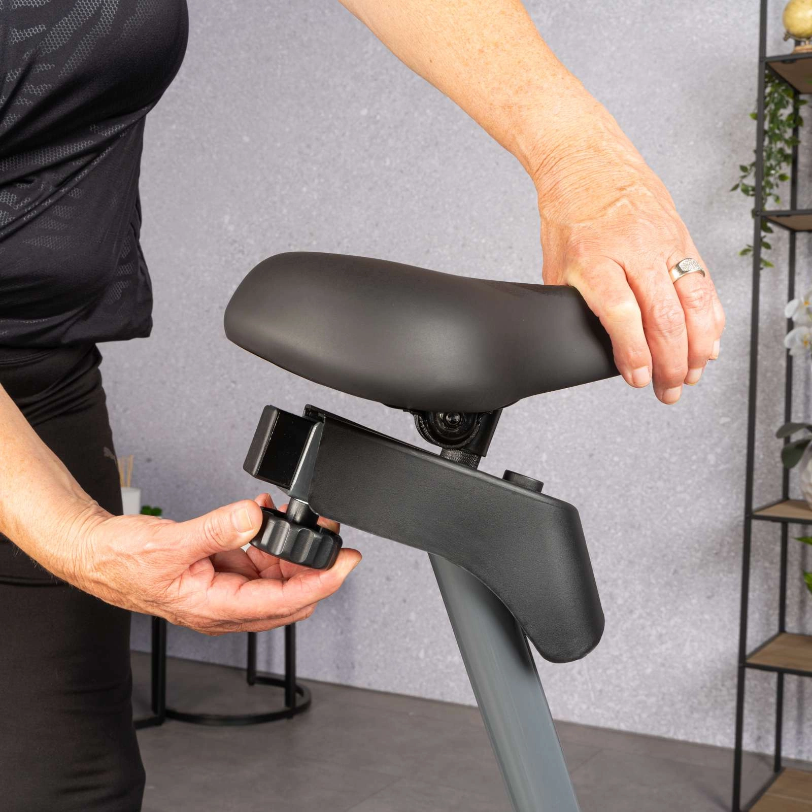 Rower treningowy Tunturi Cardio Fit B40 został zaprojektowany z myślą o maksymalnym komforcie. Siodełko można dostosować zarówno w pionie, jak i poziomie, co pozwala na precyzyjne dopasowanie do indywidualnych potrzeb i preferencji użytkownika. Kierownica również oferuje regulację, umożliwiając ustawienie jej pod odpowiednim kątem dla optymalnej postawy podczas ćwiczeń. Takie możliwości regulacji gwarantują, że każdy użytkownik może znaleźć najbardziej komfortową i efektywną pozycję, co przekłada się na lepsze wyniki treningowe i mniejsze ryzyko kontuzji.