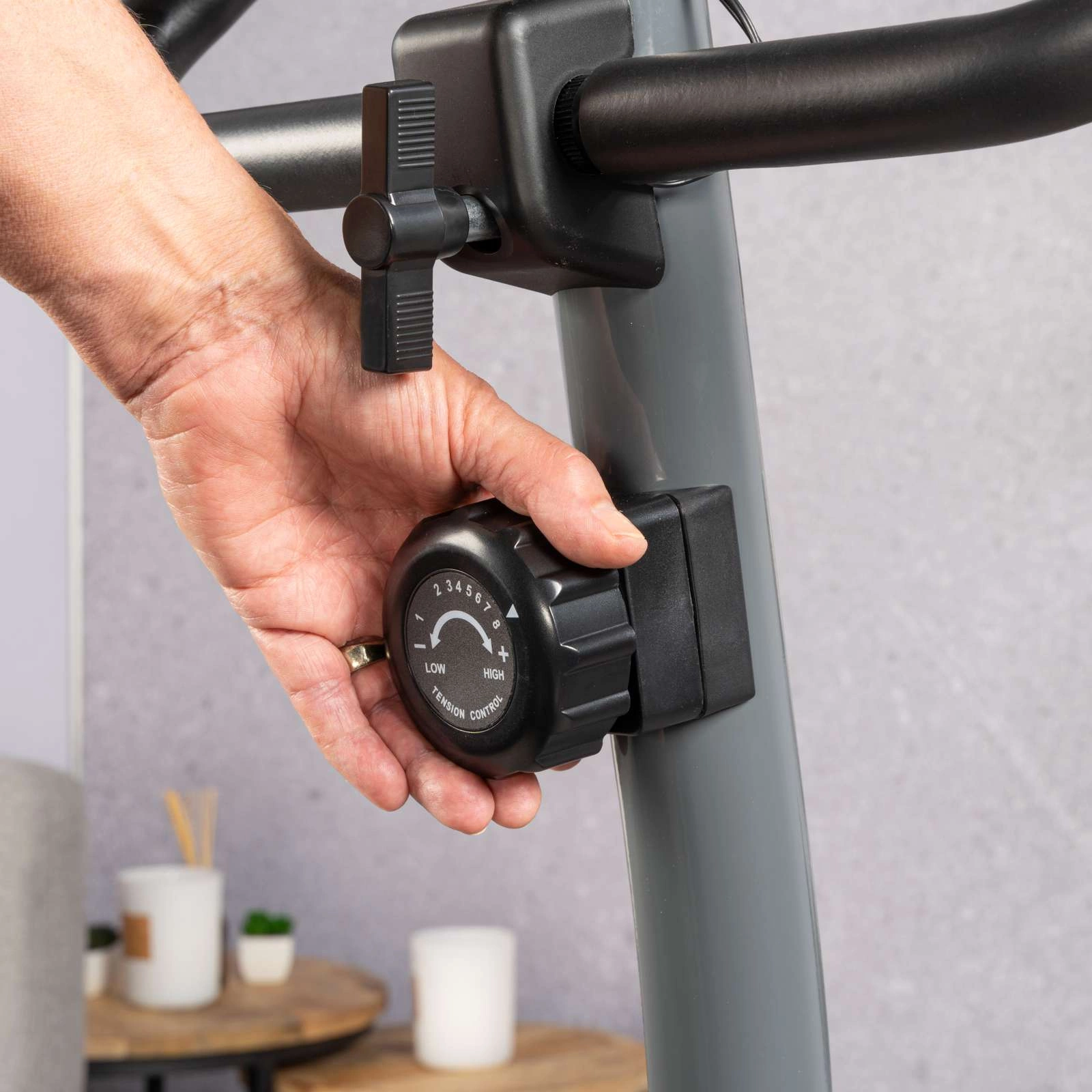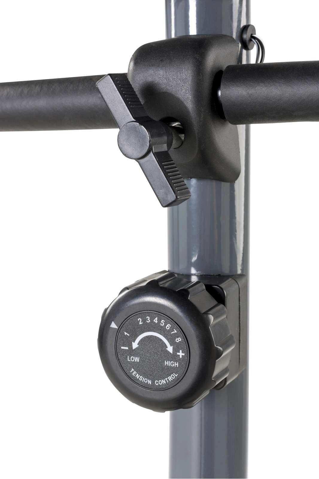 - 8 poziomów oporu: Umożliwia dostosowanie intensywności treningu, co pozwala na efektywne ćwiczenie zarówno dla początkujących, jak i bardziej zaawansowanych użytkowników.