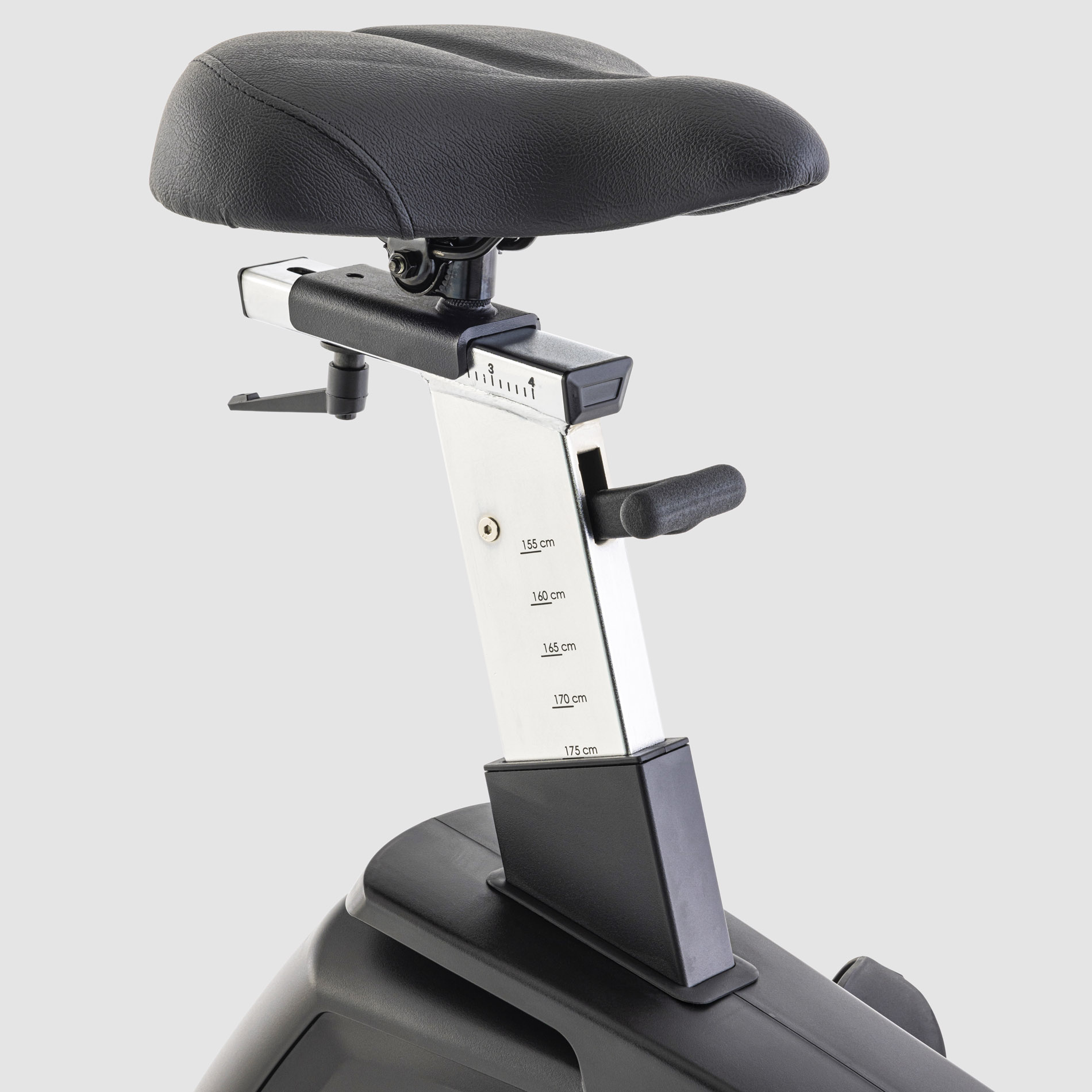 Tunturi Platinum UB20 Upright Bike posiada siodełko, które umożliwia precyzyjną regulację zarówno wysokości, jak i ustawienia w poziomie. Dzięki łatwej do odczytania skali na wsporniku siodełka, możesz dokładnie dopasować jego pozycję do swojego wzrostu, co zapewnia wygodę i prawidłową postawę podczas treningu. Dodatkowa możliwość poziomej regulacji pozwala na jeszcze lepsze dostosowanie siodełka do indywidualnych preferencji, co gwarantuje maksymalny komfort i efektywność podczas każdej sesji treningowej.