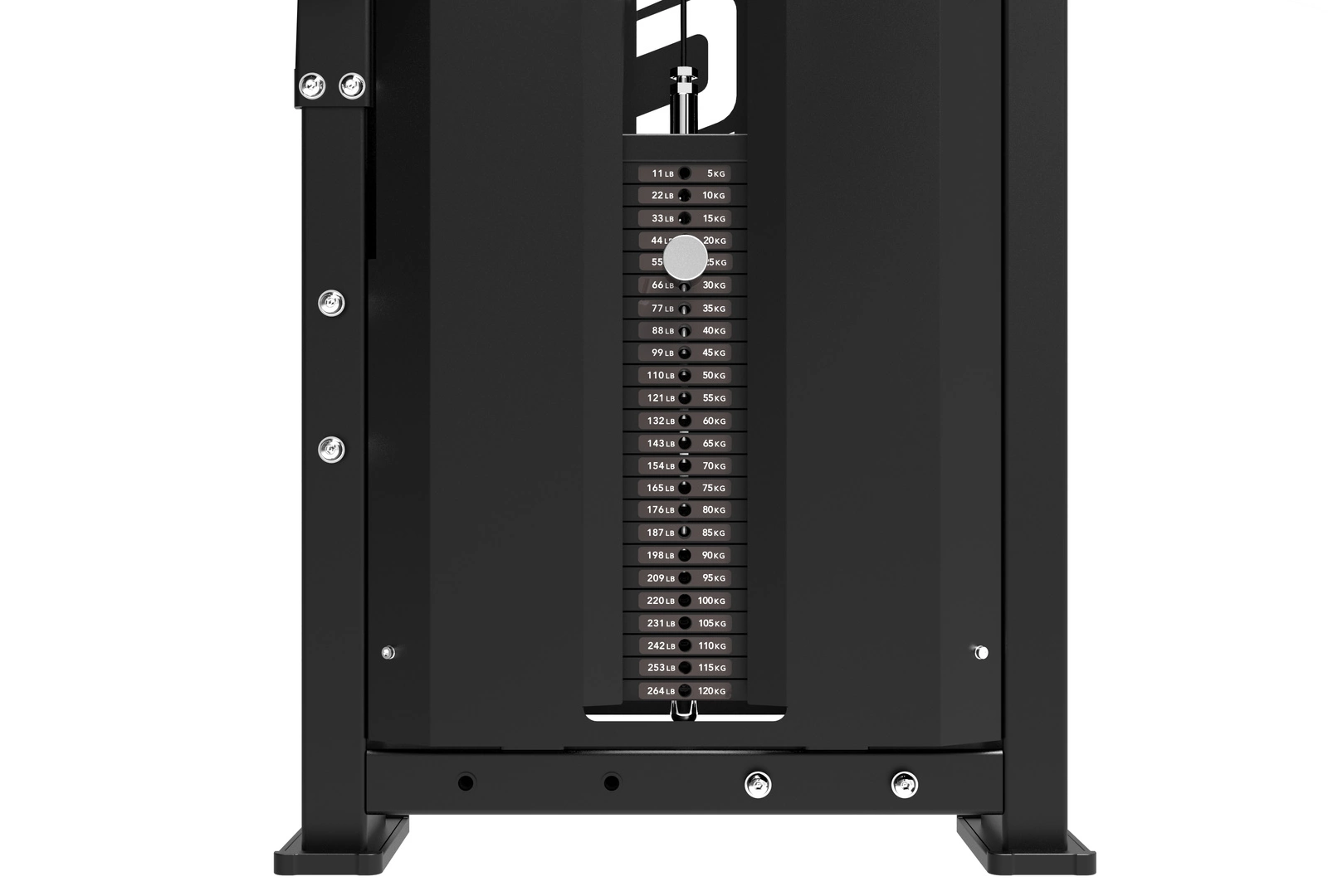 - Mocny stos obciążeń - aż 120 kg z możliwością regulacji w precyzyjnych krokach 2,5 lub 5 kg. Idealne zarówno dla początkujących, jak i zaawansowanych.