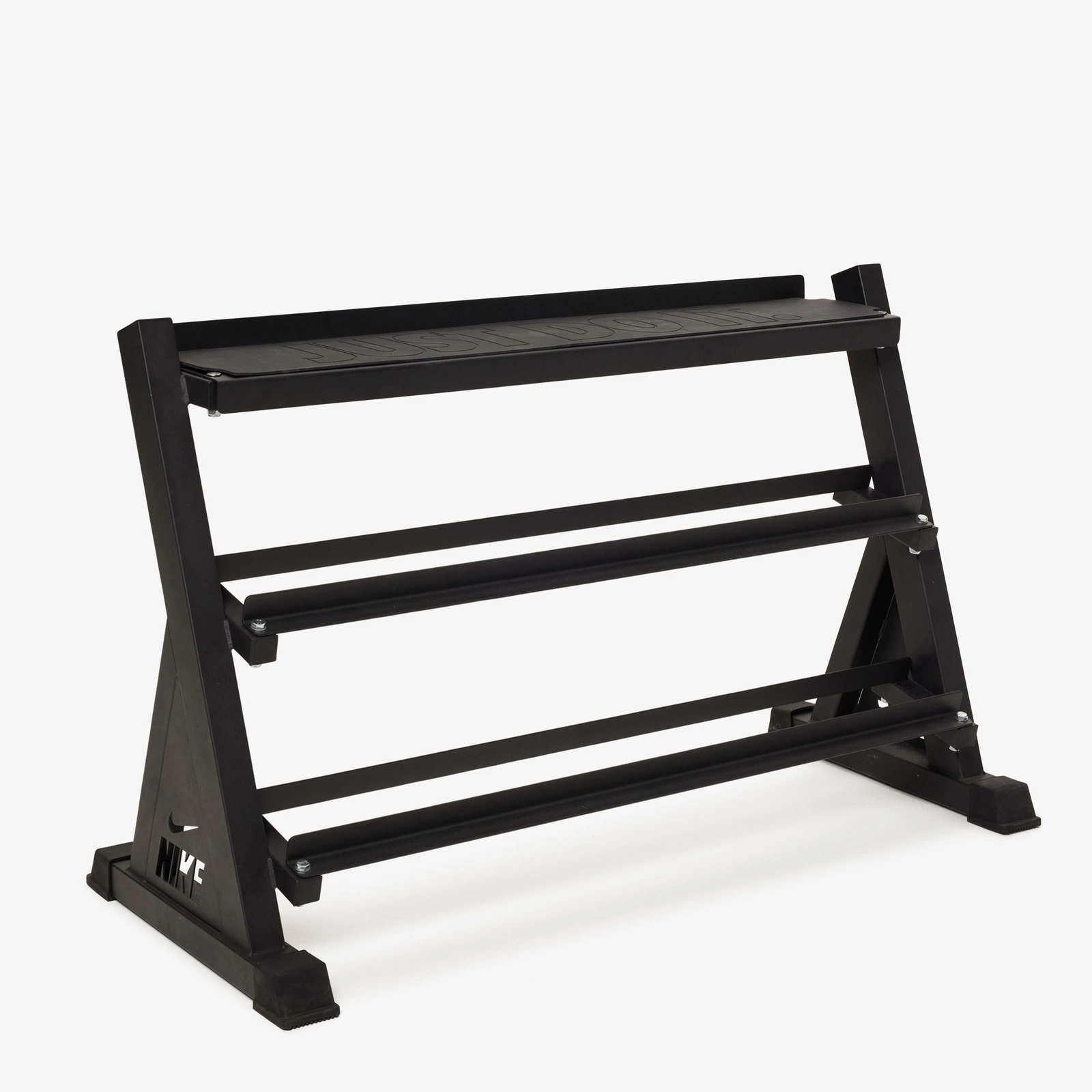 Stojak Nike to solidne rozwiązanie do przechowywania kettlebelli i hantli w jednej, kompaktowej konstrukcji. Trzy półki – w tym górna z matą ochronną – zapewniają porządek i szybki dostęp do sprzętu, a stalowa rama gwarantuje stabilność nawet przy dużym obciążeniu.