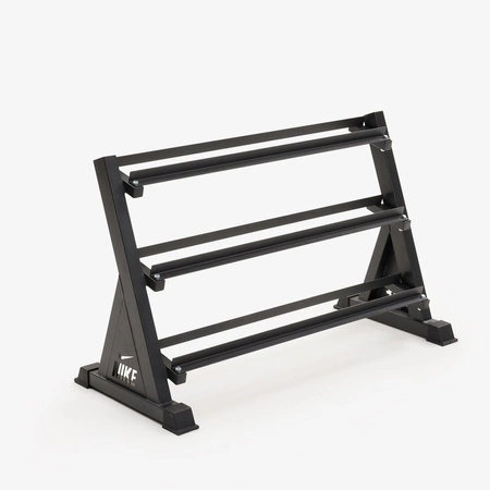 Dzięki otwartej budowie i trzem poziomom, stojak Nike pozwala na szybkie rozmieszczenie hantli według wagi, rodzaju lub częstotliwości użycia. To rozwiązanie, które usprawnia każdy trening, zapewniając łatwy dostęp do każdej pary hantli.
