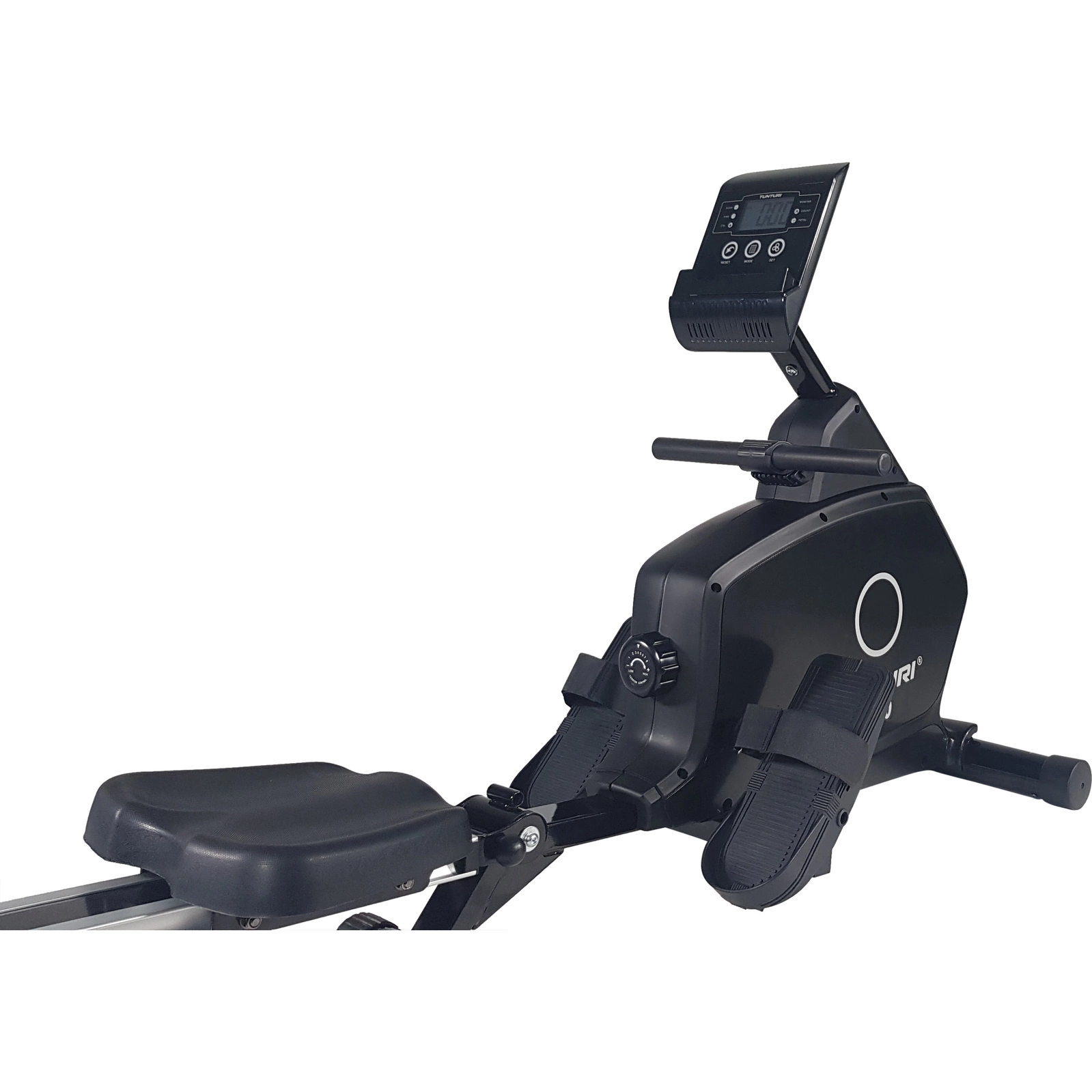 Ergonomiczne siedzisko przesuwa się płynnie po stabilnej prowadnicy, co gwarantuje naturalny ruch wioślarski.Antypoślizgowe pedały z regulowanymi paskami dbają o bezpieczeństwo i komfort podczas intensywnego treningu.
