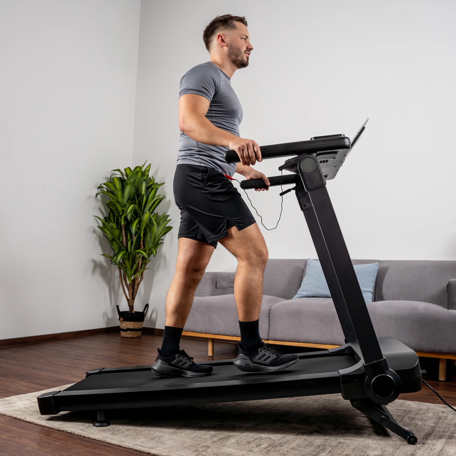 Stabilna konstrukcja daje poczucie pewności podczas biegu.Urządzenie dostarczane jest w stanie wstępnie zmontowanym - zakończenie montażu zajmuje przeciętnie około 15 minut.