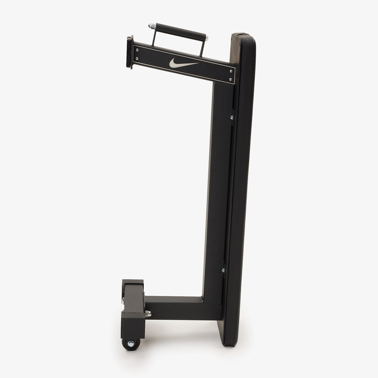 Ławka Nike łączy solidną stalową konstrukcję z praktycznymi kółkami transportowymi. Po treningu możesz ją szybko postawić pionowo i schować – idealna do mniejszych przestrzeni.