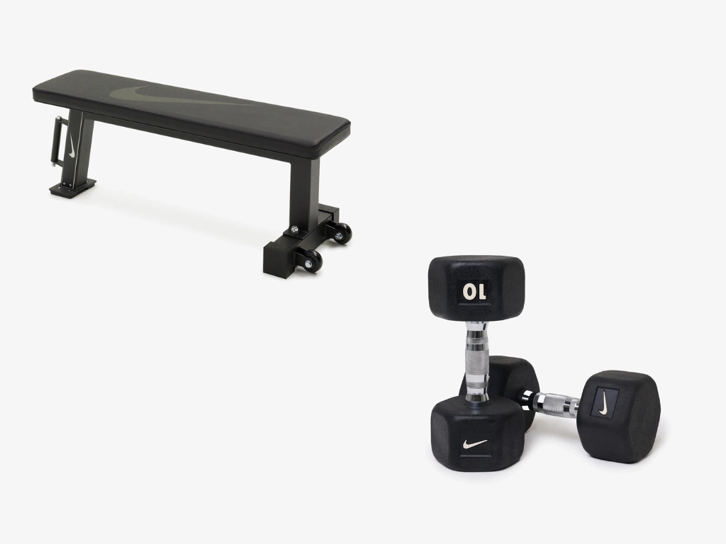 Zestaw Treningowy Nike – Ławka + 3 Pary Hantli (5, 10, 15kg)